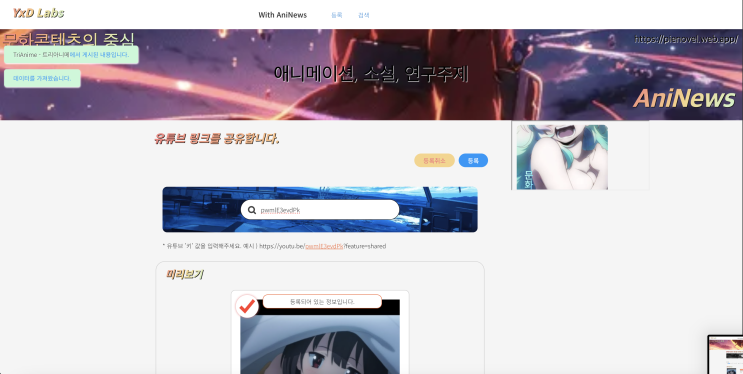 [애니뉴스] YxD Labs - 유튜브 링크 공유