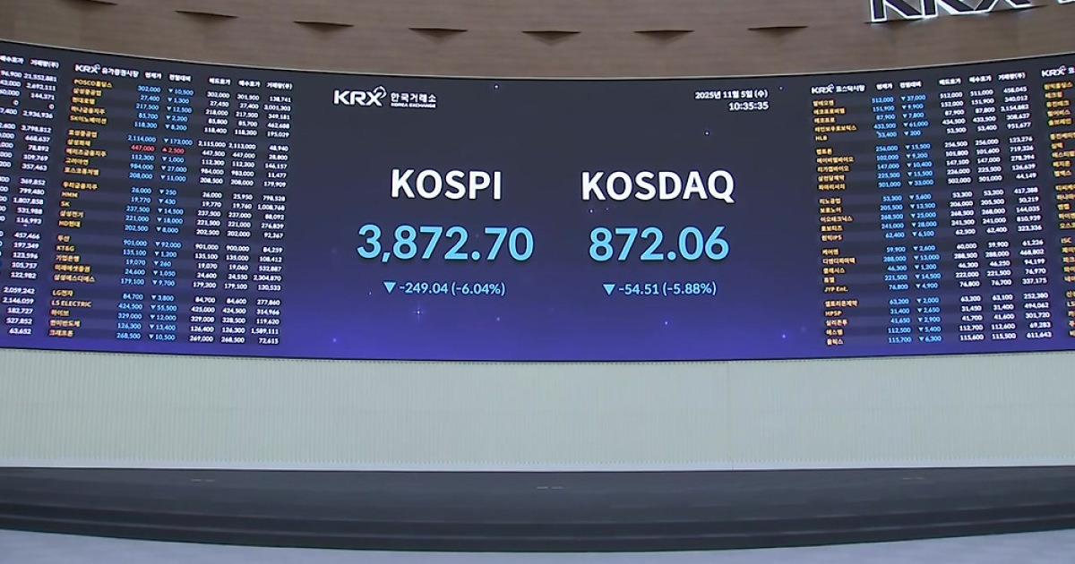 코스피 급락 4,000선 붕괴...매도 사이드카 발동앱에서 작성