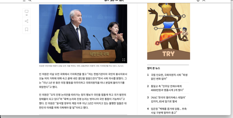 [대한민국] 인요한 사퇴 - 좌우를 떠나 -
